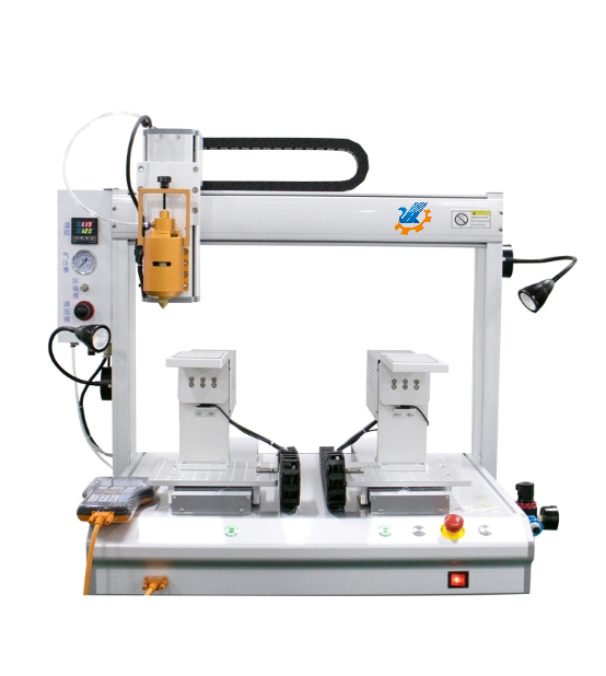 Automatic glue dispensing machine is a professional equipment that replaces manual glue dispensing. In industrial production, glue dispensing is needed in many places, such as integrated circuits, semiconductor packaging, printed circuit boards, color LCD screens, electronic components (such as relays, speakers), electronic components, automotive parts, etc. Traditional glue dispensing is achieved by manual operation of workers. The glue dispensing process is more and more common in industrial production, and the requirements are becoming more and more stringent. Traditional glue dispensing is operated by workers manually. With the rapid development of automation technology, manual glue dispensing is far from meeting industrial needs and is gradually replaced by automatic glue dispensing machines. Automatic glue dispensing machines are widely used in industrial production, such as integrated circuits, printed circuit boards, electronic components, automotive parts, handbags, packaging boxes, etc. The application of automatic glue dispensing machines has greatly improved production efficiency and product quality, and can realize some processes that cannot be completed by manual glue dispensing. In terms of automation, automatic glue dispensing machines can achieve three-axis linkage and intelligent work. Machine types: ◆Three-axis hot melt automatic dispensing machine ◆Dual-station hot melt dispensing machine ◆Two-dimensional rotary hot melt dispensing machine ◆Y-axis rotary hot melt dispensing machine ◆Dual-station rotary hot melt dispensing machine ◆Dual Y double hot melt dispensing machine Application: Adhesive labels, zipper pulls, key chains, bookmarks, key covers, USB disk shells, MP3 shells, mobile phone lanyards, mobile phone ornaments, mobile phone holders, mobile phone wipes, wrist straps, silicone bracelets, silicone necklaces, PVC car anti-slip mats, refrigerator magnets, mouse pads, coasters, glasses silicone covers, etc. Suitable for clothing, shoes and hats, services, electronic appliances, toys, gifts, home furnishings, etc.